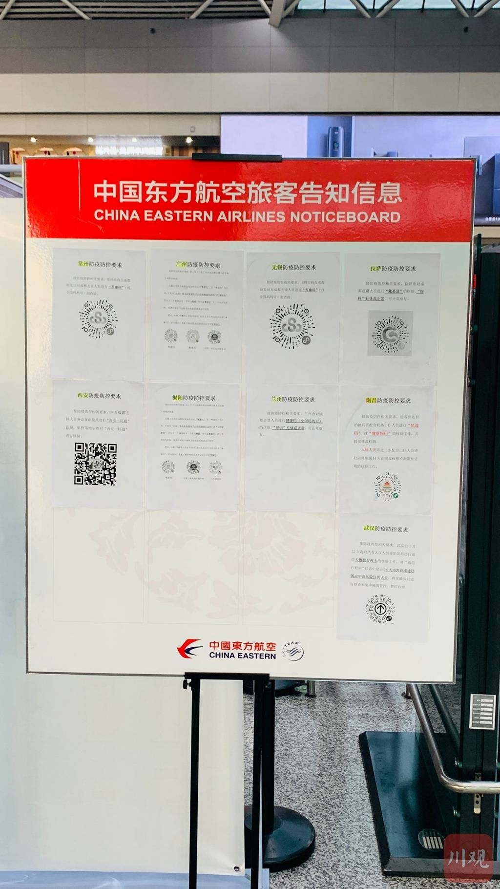 T2航站楼,上海东方航空公司所在的M值机岛旁,显眼位置处摆放着一块“中国东方航空旅客告知信息”公示牌。“可以实时更新各地防控政策,方便前往这些区域的旅客查询。”东航值机售票柜台主任张璐说,这些信息随时都在变,一天可能会有四、五次变化,他们会即时更新。比如公示牌上,南昌防疫防控要求中,除核验“绿码”外,就还包括“入境人员需进一步配合工作人员进行隔离期满14天证明及核酸检阴性证明的核验工作”。