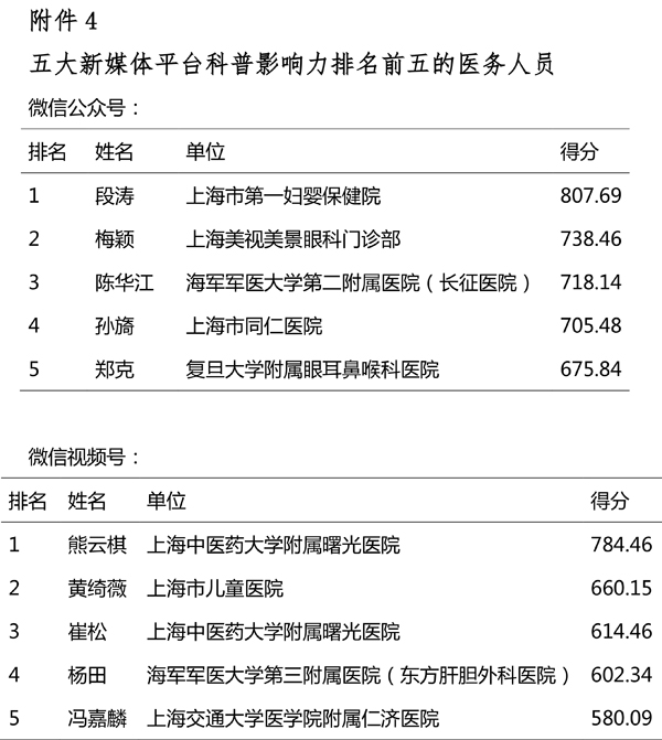 附医疗机构和医务人员健康科普影响力指数排行榜: