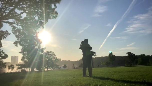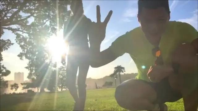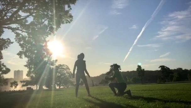 求婚当天,袁伟豪与张宝儿穿着运动衣,在加拿大尼亚加拉大瀑布前一同锻炼,享受美好的阳光。