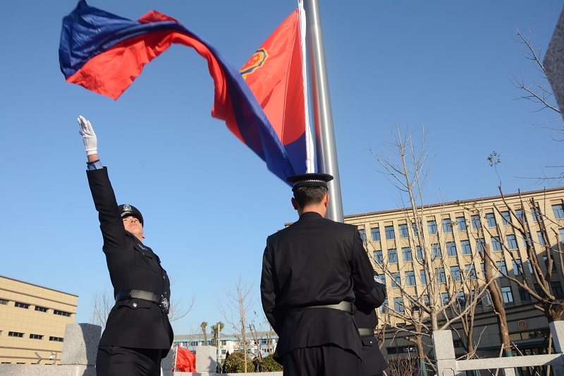 上午9点整,伴随着雄壮的《国家安全战士之歌》,干警们面向冉冉升起的中国人民警察警旗敬礼,庄严宣誓,“我们将认真贯彻习近平总书记重要训词精神,坚决做到对党忠诚、服务人民、执法公正、纪律严明;坚定纯洁、让党放心、甘于奉献、能拼善赢”。发自肺腑的誓词句句铿锵有力、昂扬豪迈,久久回荡在活动现场。