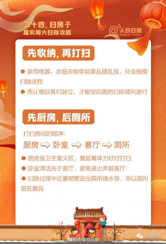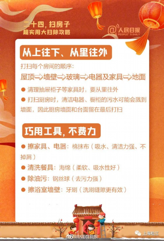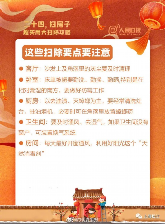 民谚说:腊月二十四,掸尘扫房子。在中国,扫尘之日,全家上下齐动手,用心打扫房屋、庭院,擦洗锅碗、拆洗被褥,干干净净迎接新年。其实,人们是借助"尘"与"陈"的谐音表达除陈、除旧的意愿。直到现在,大扫除仍是迎新年重要的环节。这几天,相信不少家庭已经开始大扫除了。