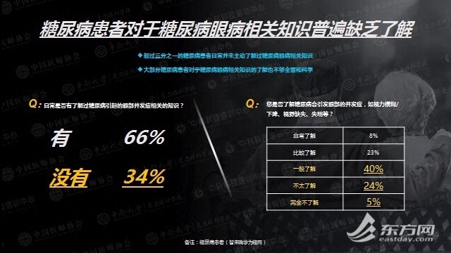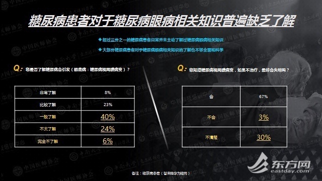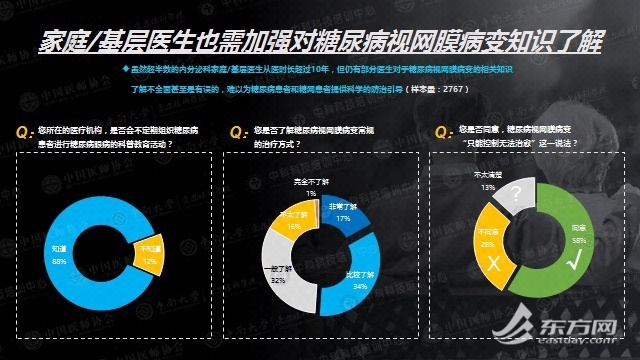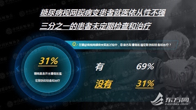 《报告》显示,在已发现病变的患者中,还有将近三分之一的患者未能按照医嘱定期接受检查和治疗。而未能及时就医的原因,和患者对糖尿病视网膜病变相关知识缺乏了解不无关系。