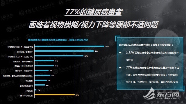 《报告》显示,在此次参与调研的患者中,就有约77%的患者因为患上糖尿病后,继而出现了视物模糊、视力下降等眼部不适问题。