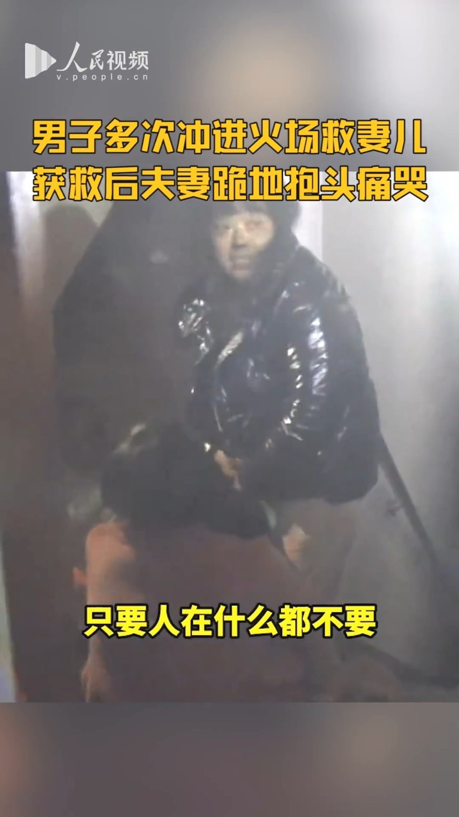 患难见真情!男子火场救妻儿全身被熏黑 夫妻见面后跪地抱头痛哭