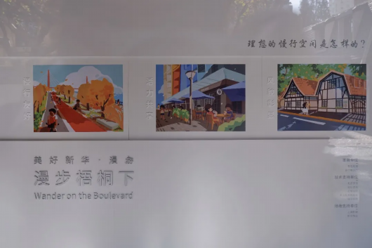 新华路街道是城市空间艺术季的主展区之一。虽然城市空间艺术季已于日前落下帷幕,但仍有一些艺术装置和展品暂时被保留下来。漫步至新华路200号,便是曾经沪上知名的马哥孛罗面包房。城市空间艺术季期间,这里成为了“漫游·漫步梧桐下”展厅。展示着新华慢行规划从系统到节点的,研究路径与设计实践成果。