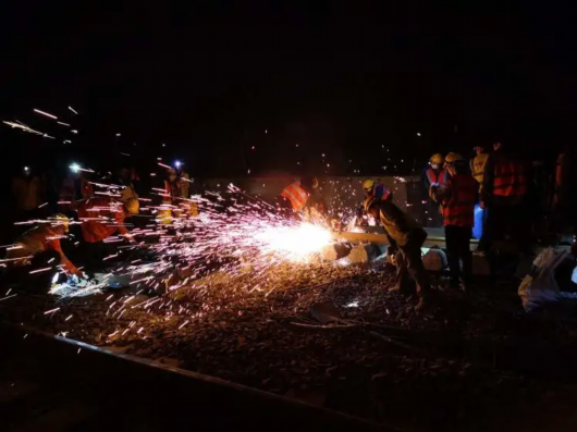 施工人员正在进行锯轨作业。黄云权 摄