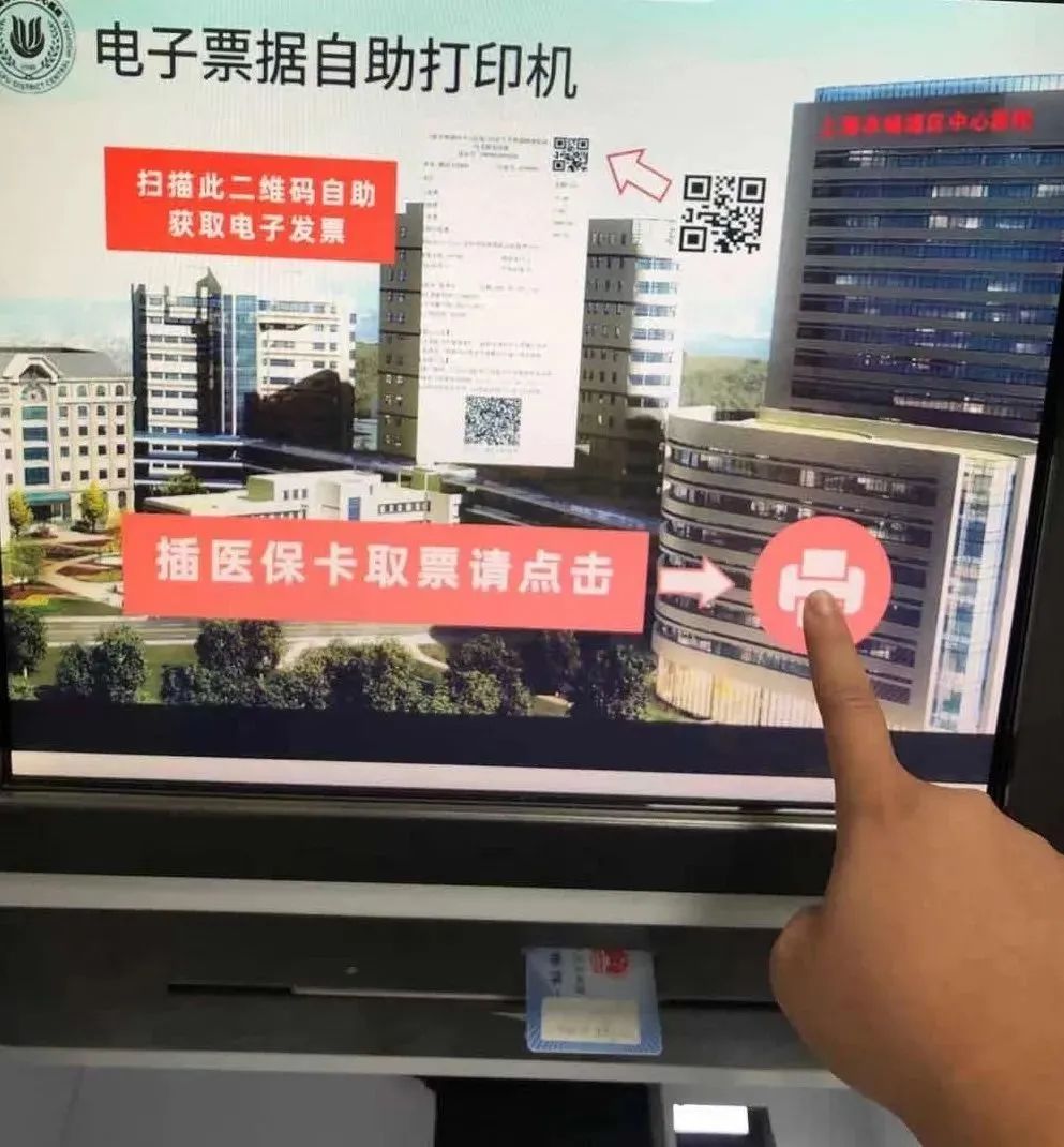 医保卡:在电子票据自助打印机上插入医保卡,点击打印按钮,进行电子票据打印。