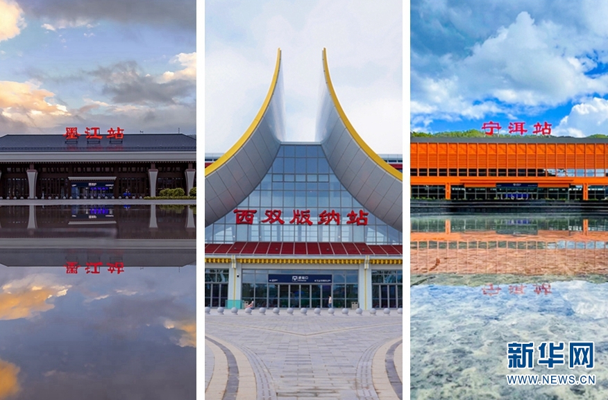 中老铁路玉磨段具有代表性的几个客运车站(拼版图片)。新华网发(供图)