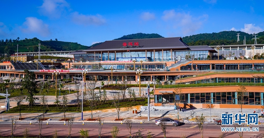 元江站。建筑面积约3000平方米,以“世外桃源、生态元江”为设计理念(摄于10月31日)。(新华网 赵普凡/摄)