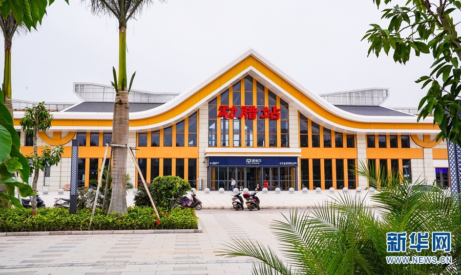 橄榄坝站。建筑面积约2500平方米,以“热带风情、多彩橄榄坝”为设计理念(摄于11月22日)。新华网发(杨林/摄)