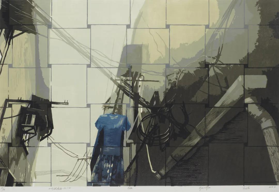 方小龙 《中国式晾晒·NO.1》,2013年,绝版套色木刻