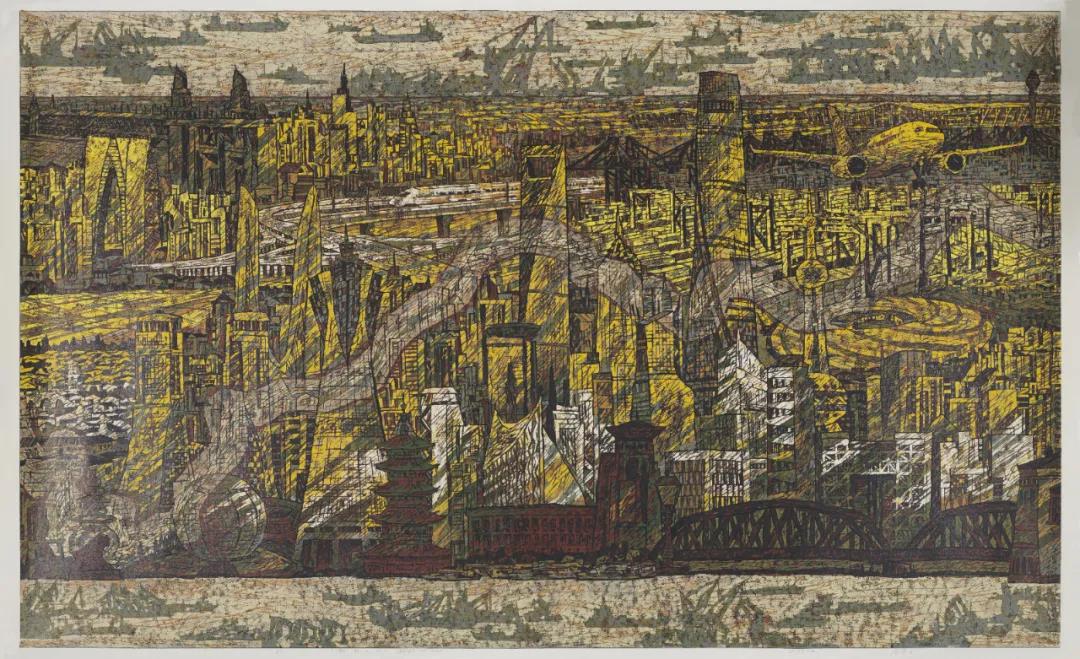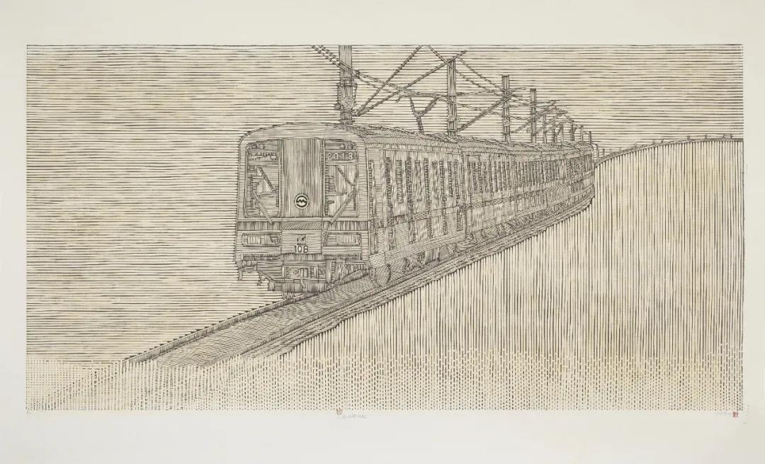 徐增英 《上海-地铁初驶》,2018年,套色木刻