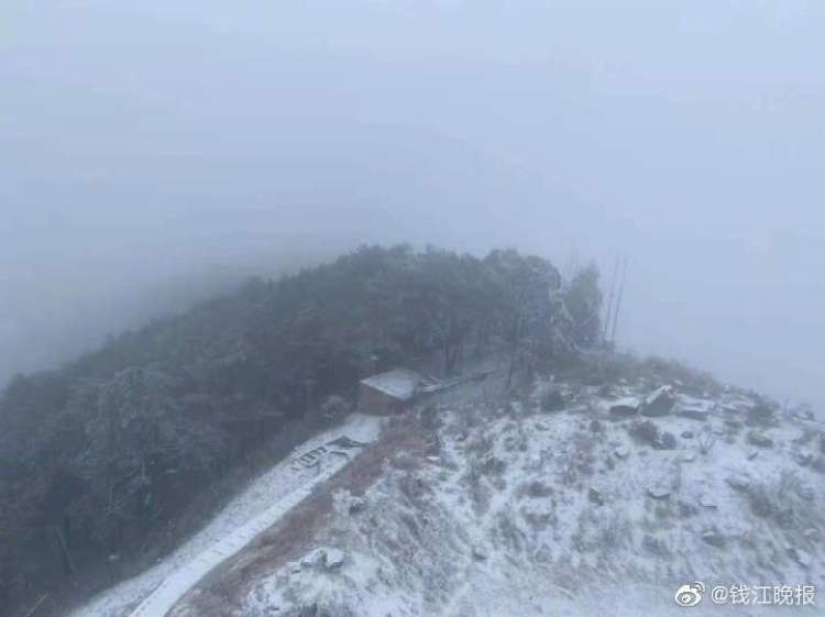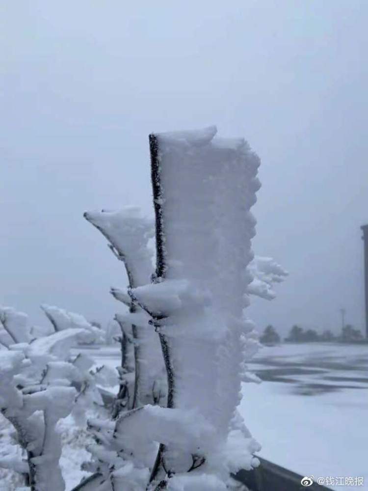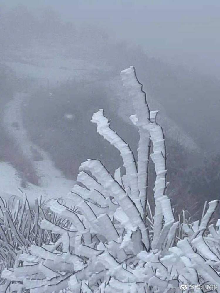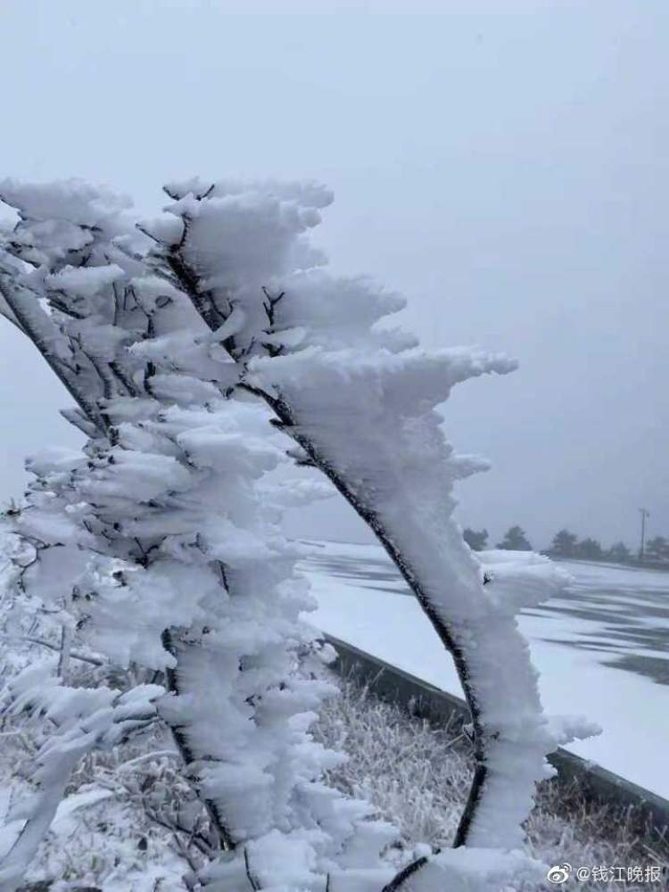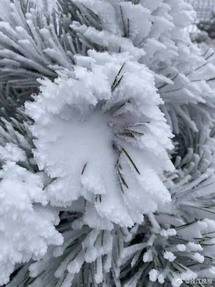 昨天晚上(12月24日),杭州高山区下起了小雪,树枝上形成了美丽的雪凇奇观。