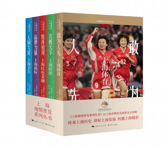 最新出版的“上海地情普及系列丛书”第三辑五本以行业为线索,包括:《敢为人先:上海体育》(作者:周力)、《衣被天下:上海纺织》(作者:廖大伟、刘盼红)、《惊涛拍岸:上海红色金融》(作者:黄沂海)、《品牌力量:上海商标》(作者:左旭初)、《人间大爱:上海卫生》(作者:彭善民、雷海波)。王荣华、洪民荣、阚宁辉在活动现场共同为第三辑新书揭幕。
