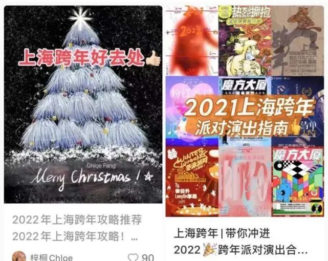 记者在部分社交媒体上搜索“上海大世界跨年”等关键词后,可以查询到不少博主推荐的元旦迎新打卡点的推荐,内容大多雷同,有大量资讯指向“上海大世界将推出2022年跨年倒计时、人工降雪、夜间集市等活动”。