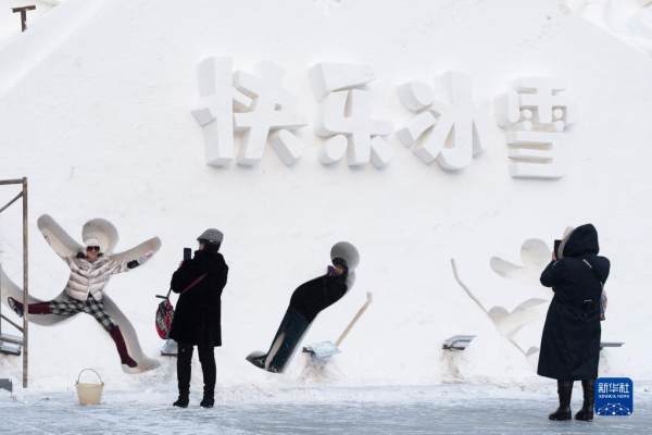 12月30日,游客在哈尔滨松花江冰雪嘉年华园区游玩。