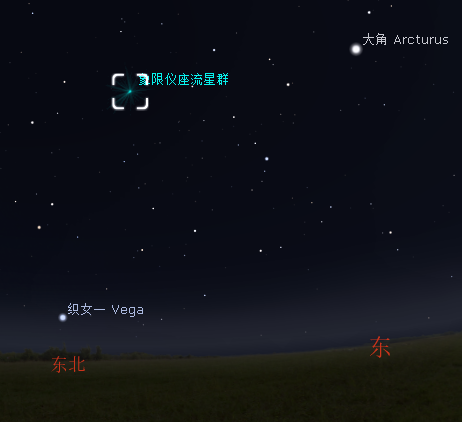 1月4日凌晨4点左右 象限仪流星群辐射点示意图 图源:星图软件