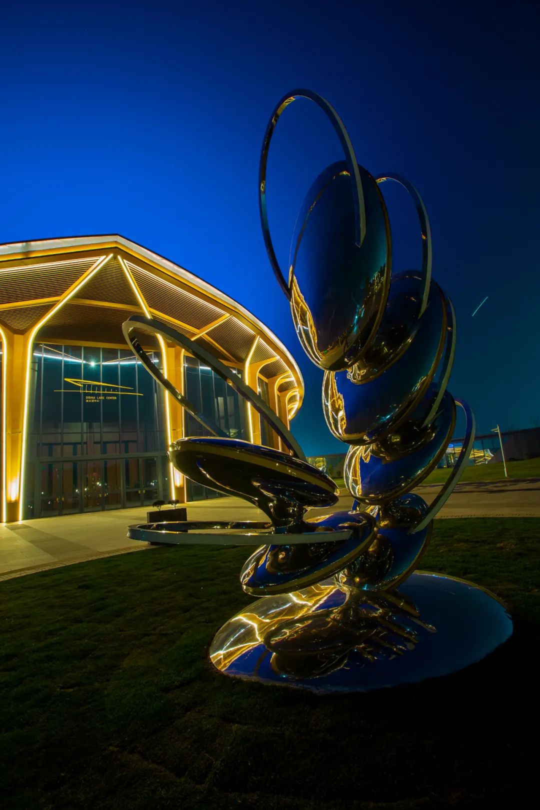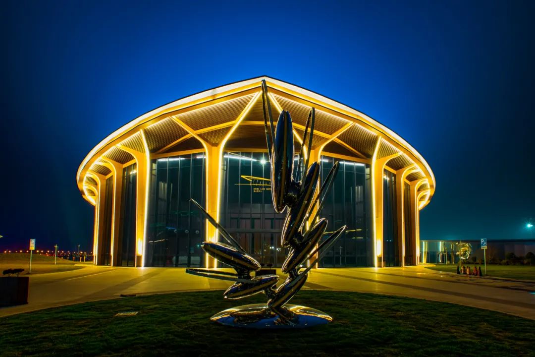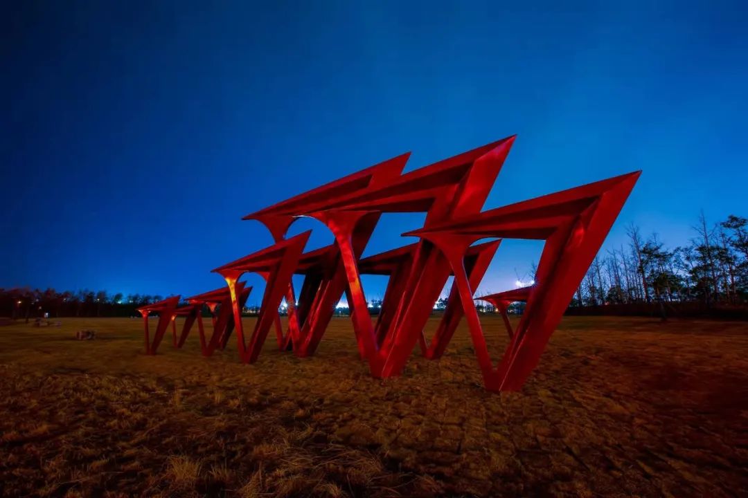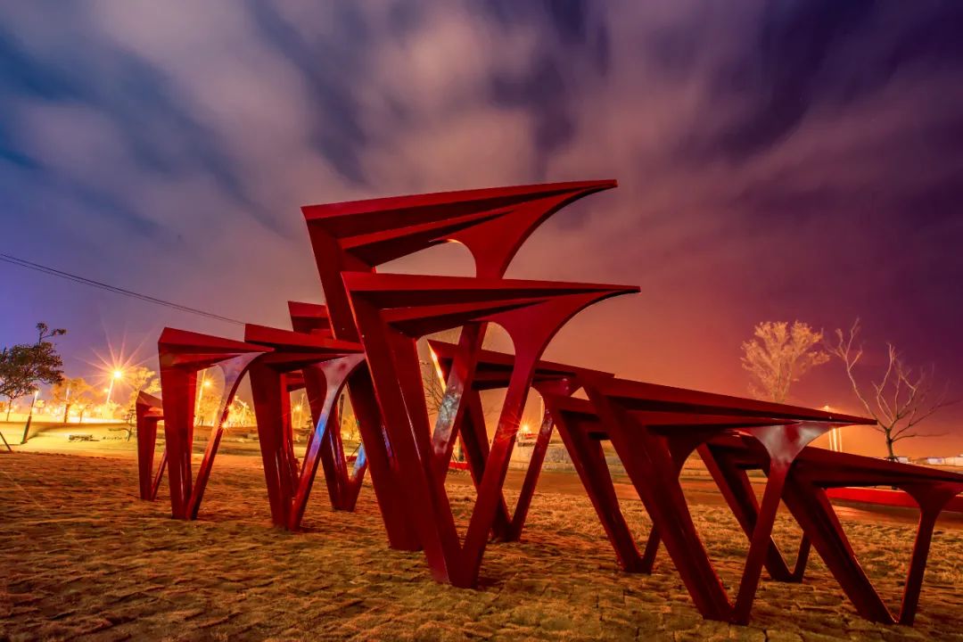 夜色中的《宏图》如展翅大鸟,伴随冬日光影的变换更迭颜色,或清冷,或暖阳,宏图之翼,无限深远!