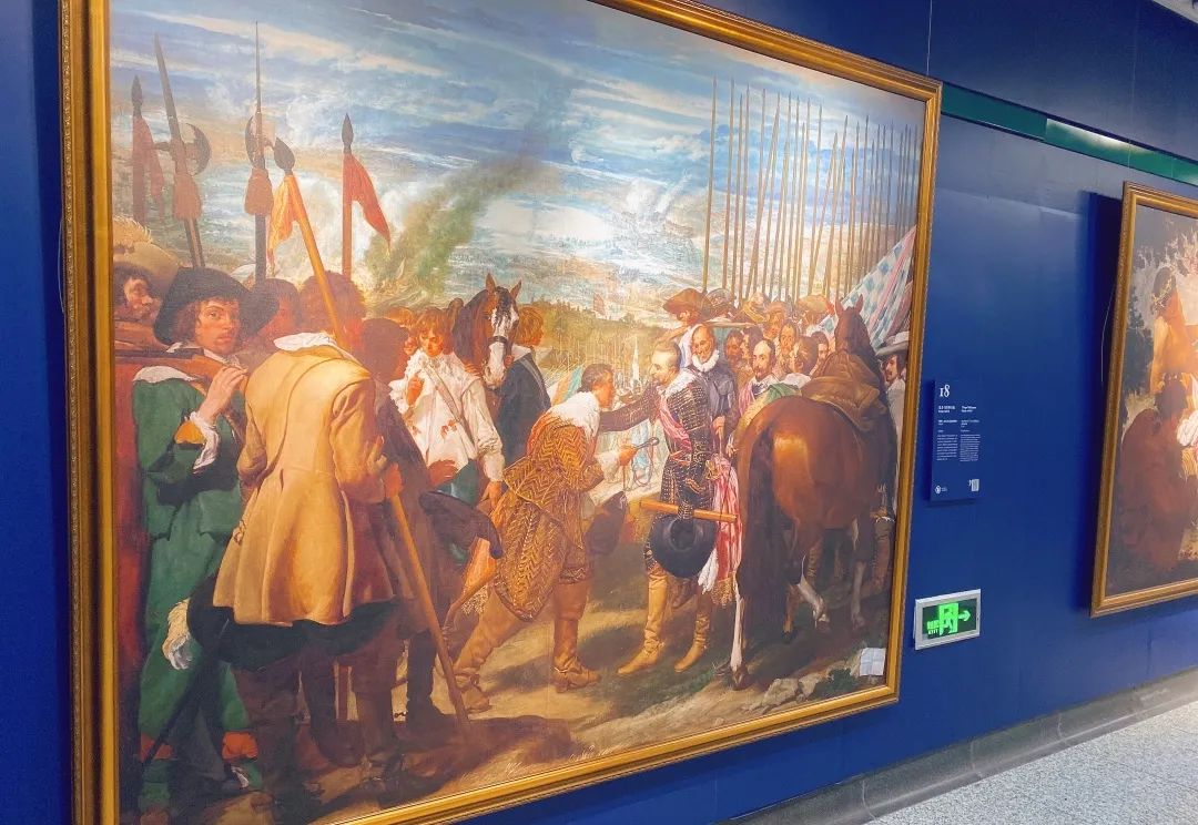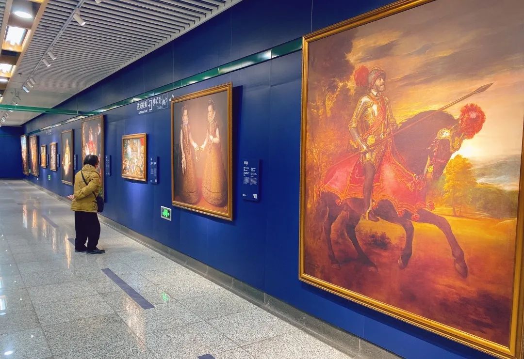 即日起至2月10日,“地铁遇见普拉多”展览在龙华中路站站厅展示。走进龙华中路站1号口,乘客即可看到一片如夜空般的深蓝色墙体,以及29幅西班牙普拉多国家博物馆馆藏珍品。