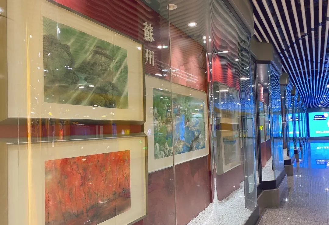 近日,陕西南路站文化长廊“上新”《锦绣河山:乐震文、张弛伉俪写生作品展》。《春风和致》《网师园听秋》《赤水溪》《雪域古堡》……路过的乘客足不出“沪”,就能从海派名家乐震文、张弛伉俪的丹青妙笔中,遍览大好河山的四季景致。本次展览共展示20幅作品,将持续至1月中旬。