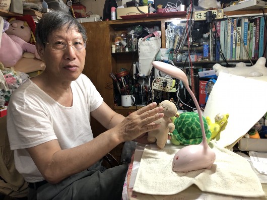 “玩偶医生”朱伯明 澎湃新闻记者 李佳蔚 图