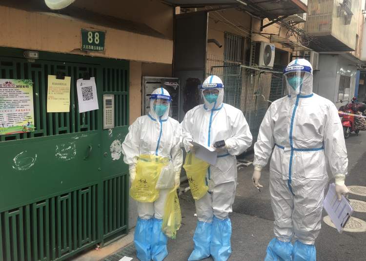 9点开始,现场展开第一轮核酸检测。因为医护人员对楼内的情况可能不太了解,需要有一位居委干部全程陪同。谁去?这时,王磊的内心有一些小纠结。他看了一眼比他年纪大很多的同事,勇敢地第一个举起了手。
