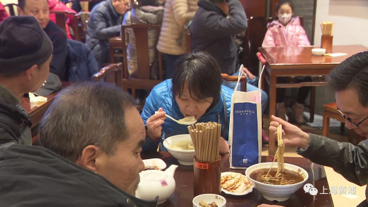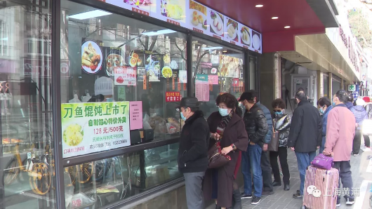今天中午时分记者在老半斋外卖窗口看到,前来购买八宝饭、糖年糕等糯米制品的市民排起了长队,不少市民都是一买好几样。春天上市的老半斋的刀鱼汁面在上海滩赫赫有名,现在虽然还没有到这个季节,但这几天,老半斋的刀鱼馄饨却已经悄然上市,据了解,由于刀鱼稀少,目前还没有刀鱼汁面售卖。
