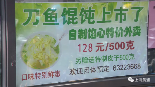 老半斋大堂经理朱翠华告诉记者,今年已经是卖刀鱼馄饨的第三年了,现在有堂吃和外卖,外卖是一斤刀鱼馅芯送一斤馄饨面皮,而且这个面皮是为刀鱼馄饨特制的,刀鱼馅芯配这个面皮包出来味道更加好。