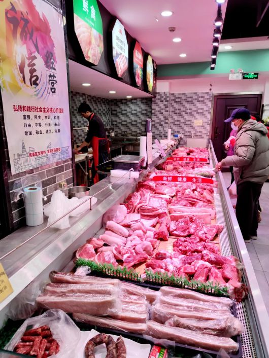 据普育菜市场场长蔡建辉介绍说,“我们积极响应‘留沪过年’的号召,今年市场里96%的经营户都不回家过年,留在这里正常开市。产品方面,许多供应商可能提前返乡离沪回家过年,因此会出现货源断档无法进货,影响春节市场供应的问题,为此,我们提前备货,准备了总价值十八万元的各种酒类、饮料、南北货、半成品等商品;肉类因自备冷库储存仓位优势,因此各种肉类商品备货充足;蔬菜则将适当囤货,确保价格稳定可控。春节期间,这里的营业时间从上午八时至晚上六时,满足居民的购物需求。”