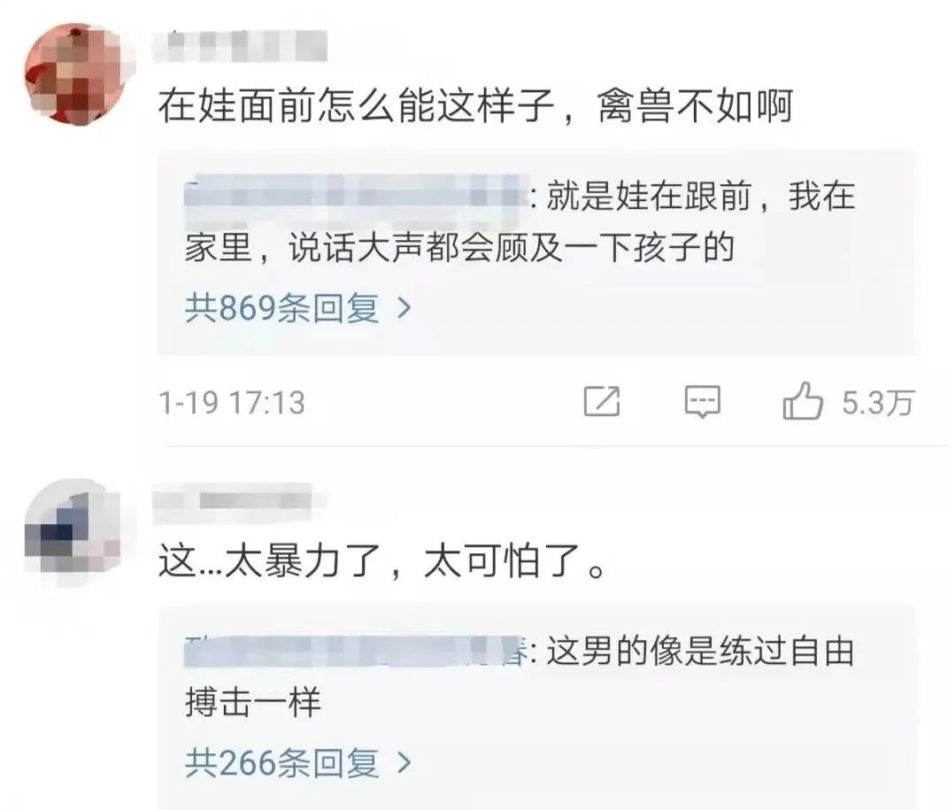 监控显示,男子一直用重拳击打女方头部,下手非常重。更让人心惊胆寒的是,女子怀里还护着一个孩子,孩子吓得一直在哭,女子一边被暴打一边不停安慰孩子:“宝宝不害怕噢”,完全没有任何反抗。更让人震惊的是,视频中出现了一个穿红衣服的老年妇女,她试图从中劝解无果,男子继续抡起重拳砸向女方,画面让人不忍直视。