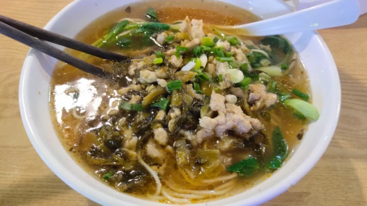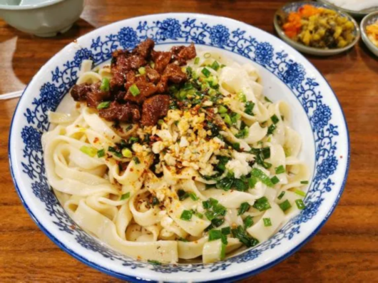 经典的吃法就是点上一盘羊肉再加一碗清汤面