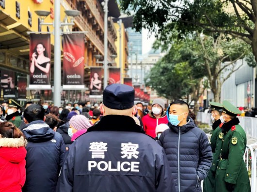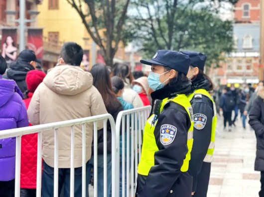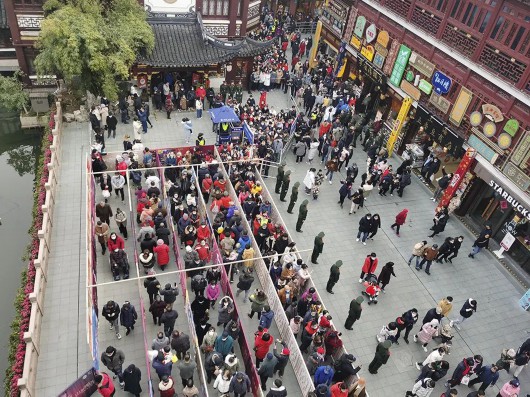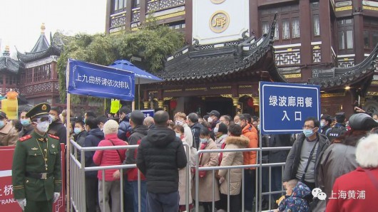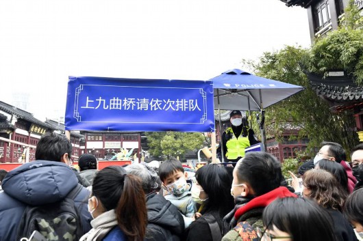 黄浦公安在豫园商城外围设置蛇形通道根据实时客流量采取单向通行波次放行等措施