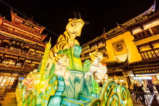 灯会超级出片哒豫园商城中心广场上一只高约9米的生肖虎灯组立于山头