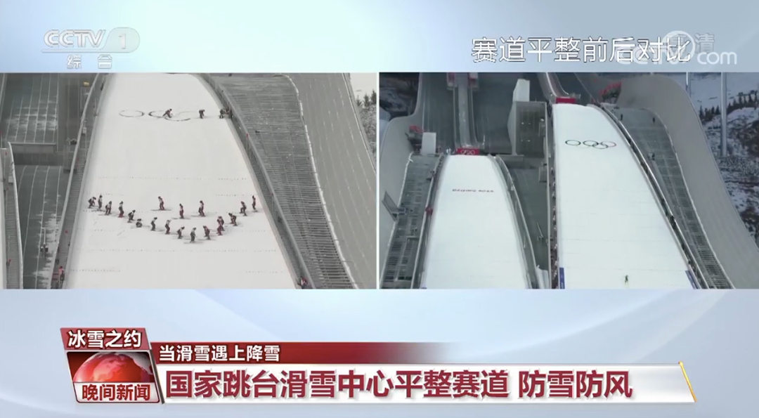 在国家跳台滑雪中心,12日也降下雪花。雪还没停,运行保障团队的赛道平整作业就开始了,工作人员对赛道进行压雪和踩雪,为运动员着落提供安全的赛道环境。