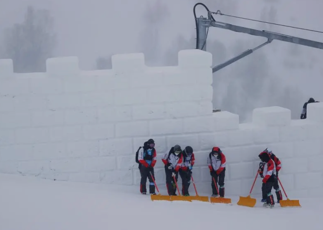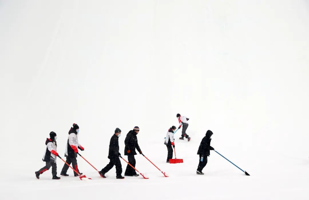 所以赛场飘雪后,工作人员会立刻清理赛道上的浮雪,能保证赛事正常进行,降低运动员受伤的概率。