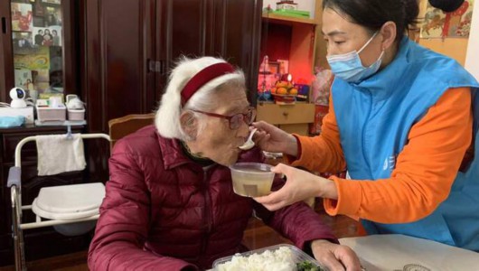 日前,记者在水电路上许阿婆的家里看到了她。老人精神不错,正在细嚼慢咽地吃着午饭,鸡块、青菜、花菜,每样都能吃上一点,一旁的女儿帮忙夹着菜,并告诉记者:“我们每天都订了午餐。白天我陪着她,晚上就有一个护理员和我交接班,专门负责陪夜。”