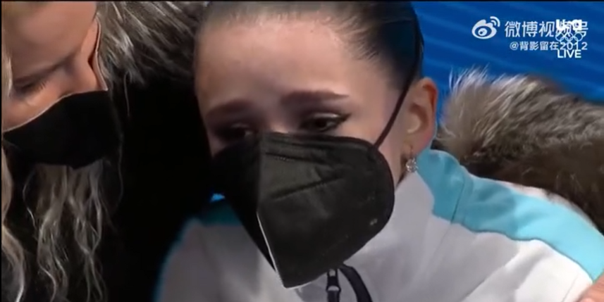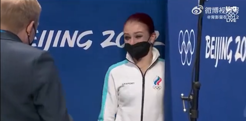 路透社描述道,瓦利耶娃完赛后双手掩面,滑出比赛区域,在名为“亲吻与哭泣”(kiss and cry)的等分区啜泣,教练埃特丽·图特别里泽(Eteri Tutberidze)则质问:“你为什么泄气了?给我解释一下,为什么?你为什么完全停止了战斗?阿克谢尔跳之后的某个点,你就泄气了。”