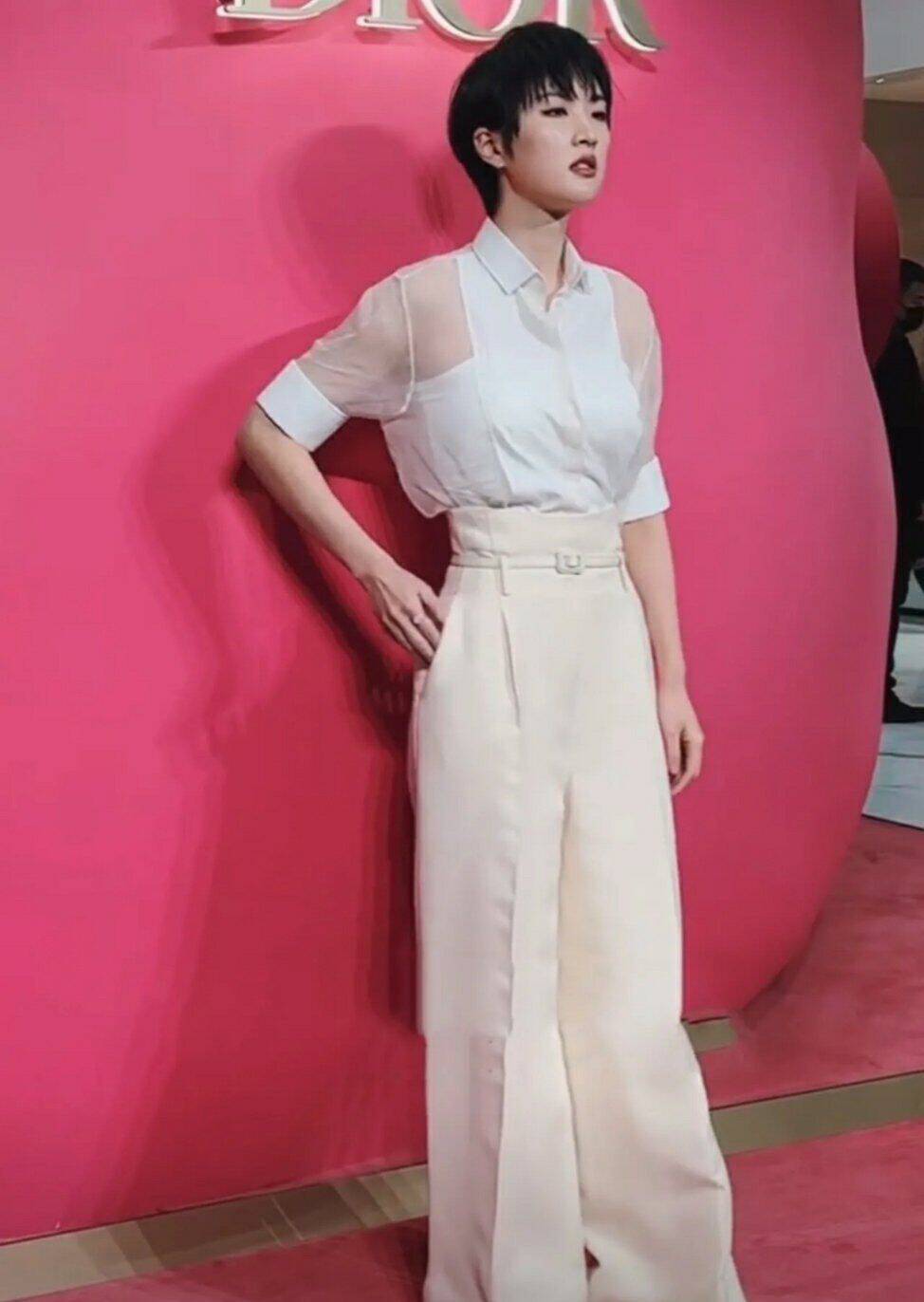 从照片中可以看见,当天姚安娜一身白色系的造型,非常的简约。可透视风的衬衫上衣搭配着高腰喇叭裤,整个打扮非常出挑。