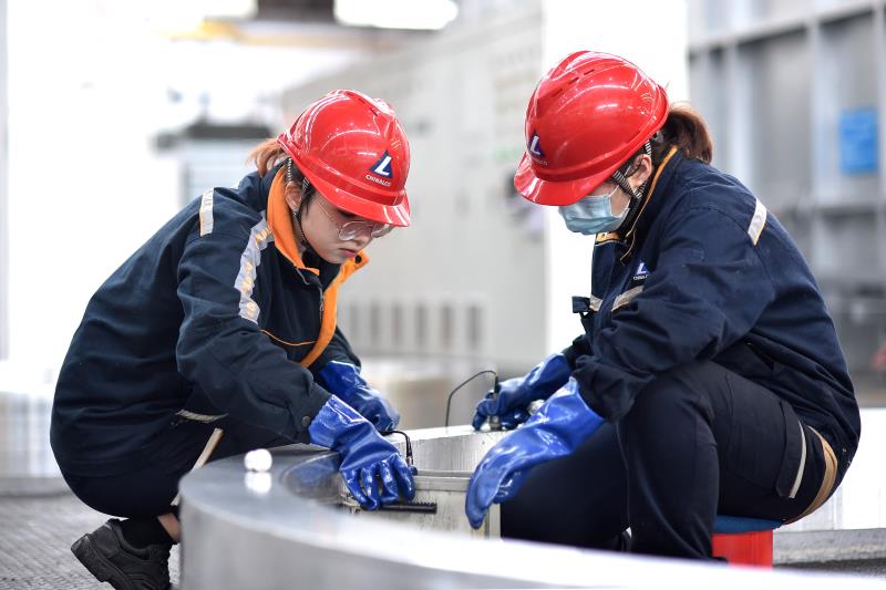 工作人员在检查铝合金锻环质量。(受访者供图)