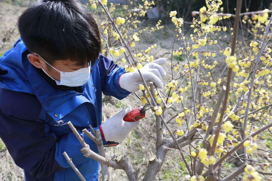 给蜡梅“理发”当然不是一般的“理发师”,他们都是蜡梅园的园艺工人。园艺工人都经过专业的技术培训,能在粗细不一的枝干上闪转腾挪,精心修剪每一株蜡梅。