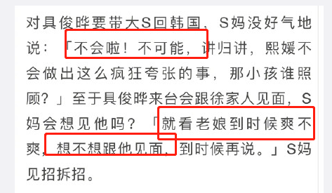 不仅当即开骂,大S妈在随后接受采访时被问到是否会和女婿见面,她本人表示:就看老娘到时候爽不爽,想不想和他见面,到时候再说。