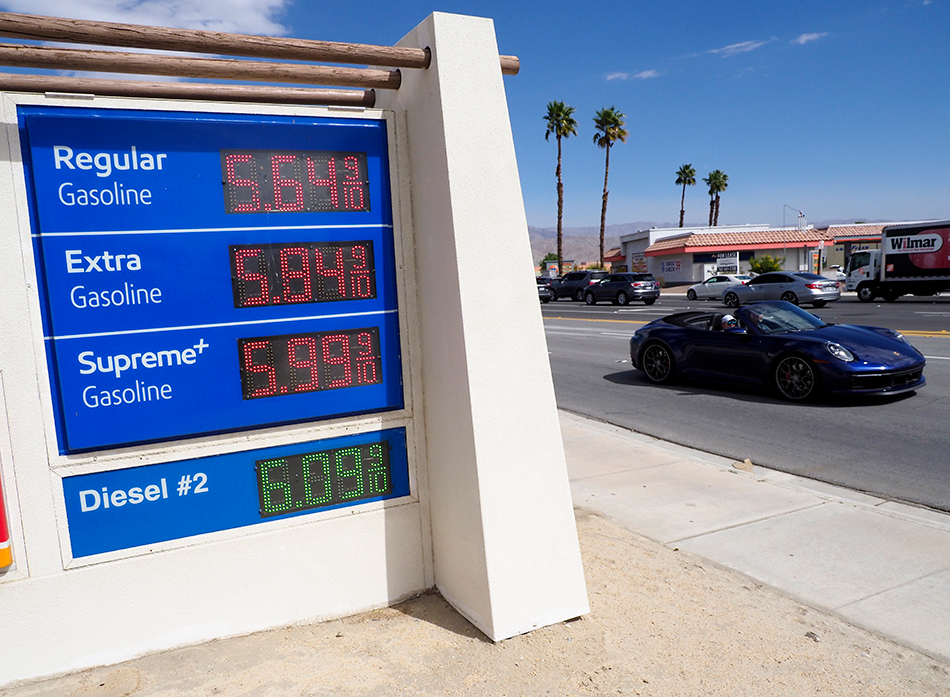当地时间2022年3月10日,美国加州,加油站显示的汽油价格。 澎湃影像 图