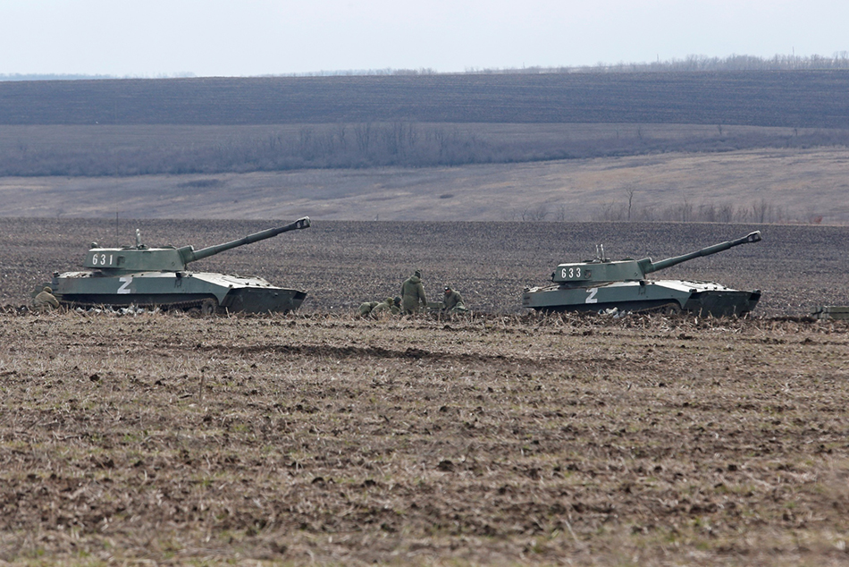 当地时间2022年3月6日,顿涅茨克地区,亲俄武装人员在前线严阵以待。 澎湃影像 图