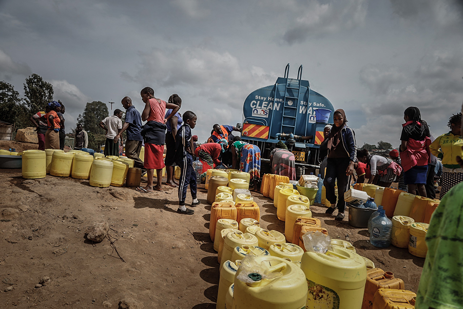 当地时间2022年1月11日,肯尼亚内罗毕,在缺水期间,人们去接桶装水。 IC 图