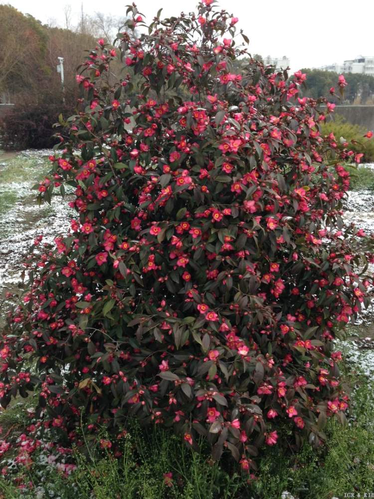 精致但不娇气,是束花茶花的另一个特点。耐修剪,在弱碱性土壤、全光照环境有高适应性,在上海弱碱性的土地和黄梅天的日子可以应付自如。