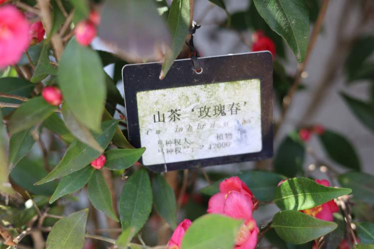 只可惜更多品种因为数量有限的原因,没有被展示出来。20多年来,上海植物园利用连蕊茶为亲本通过杂交育种,目前在世界最权威的山茶属植物品种数据库“世界山茶属植物品种数据库”中有12种,在国家林业和草原局新品种保护办公室获批束花茶花新品种10件。这就一个一个看过来
