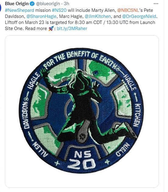 3月14日,据外媒报道,由亚马逊前首席执行官杰夫·贝佐斯创立的商业航天公司“Blue Origin”(蓝色起源)周一发表声明宣布,皮特·戴维森将成为即将执行的太空任务的机组人员之一,该任务将于3月23日从该公司的德克萨斯太空港发射。