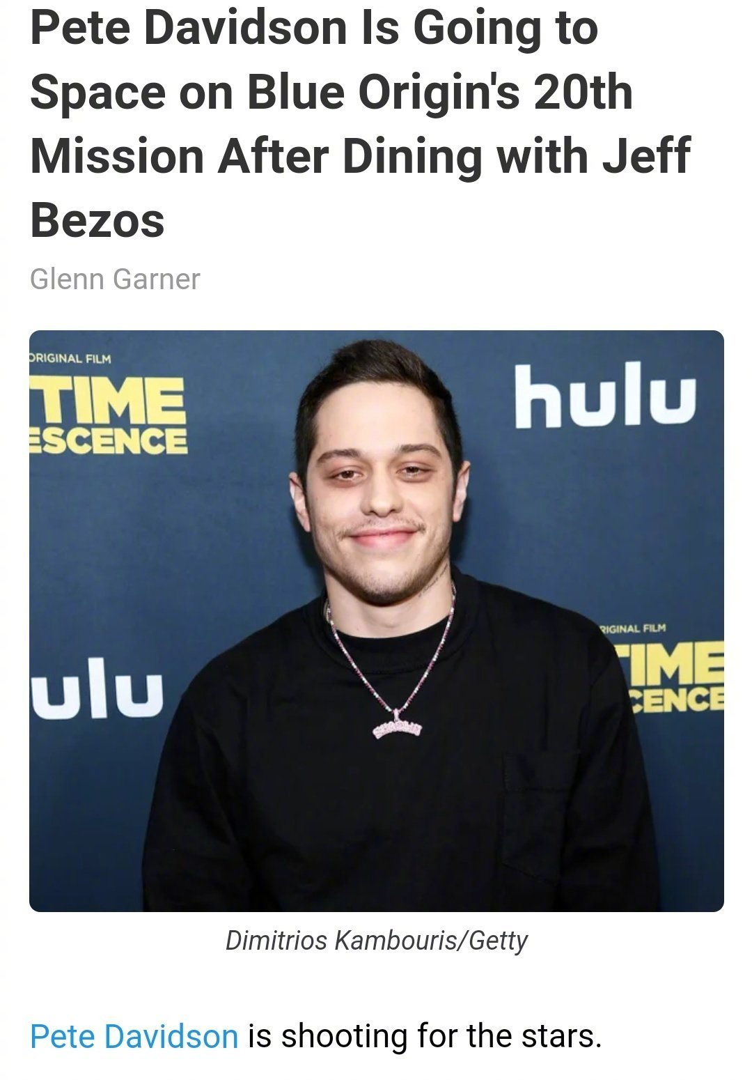 卡戴珊男友皮特·戴维森将被送往太空 与多位业界大亨同行