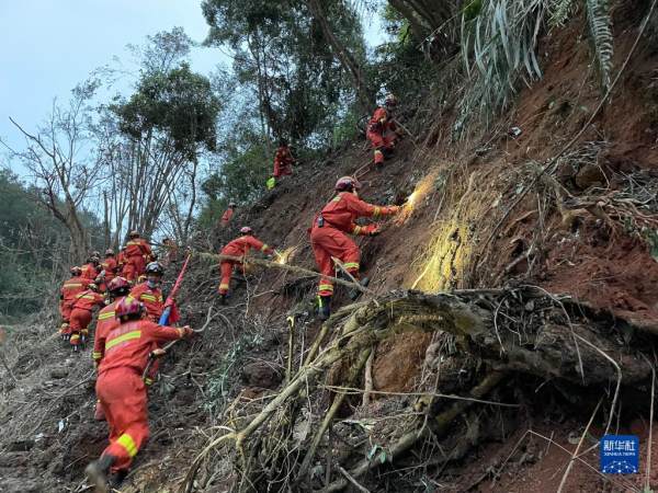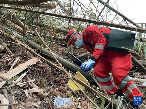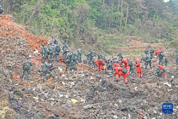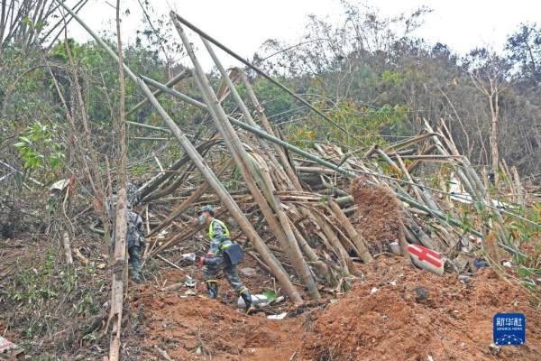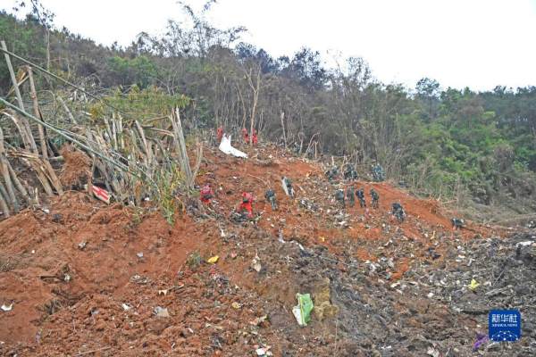 当日,在东航MU5735客机坠毁事故现场,搜救人员进入事故核心区,全力搜索黑匣子。