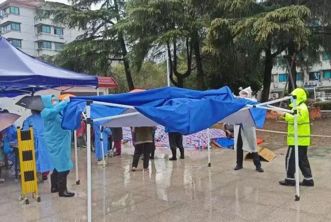 已经几天几夜没有好好休息了,加上长时间的物资搬运和秩序维护,不少城管执法队员们感觉到身体有些“吃不消”,但为了让小区核酸检测工作顺利地进行,大家强忍着疲惫,顶风冒雨地坚守在各自岗位上,全力配合好防疫工作的开展。